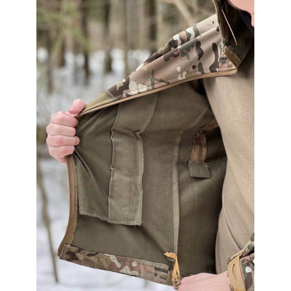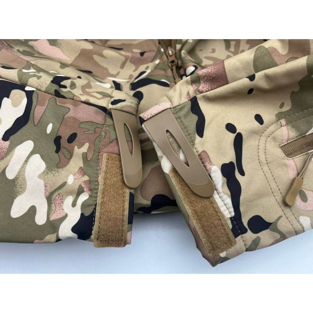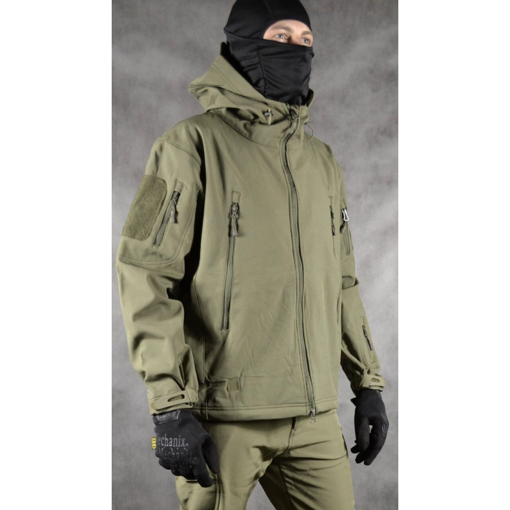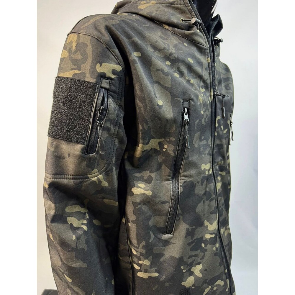 Костюм с капюшоном Shark Skin - это демисезонный тактический военный костюм, изготовленный из толстого флиса. Он обеспечивает надежную защиту и комфорт в различных погодных условиях. Ткань Softshell, из которой изготовлен костюм, имеет многослойную конструкцию, с внешним слоем из полиэстера и внутренним слоем из флиса. Это сочетание материалов обеспечивает оптимальную теплоизоляцию и защиту от холода.