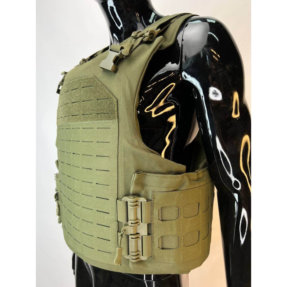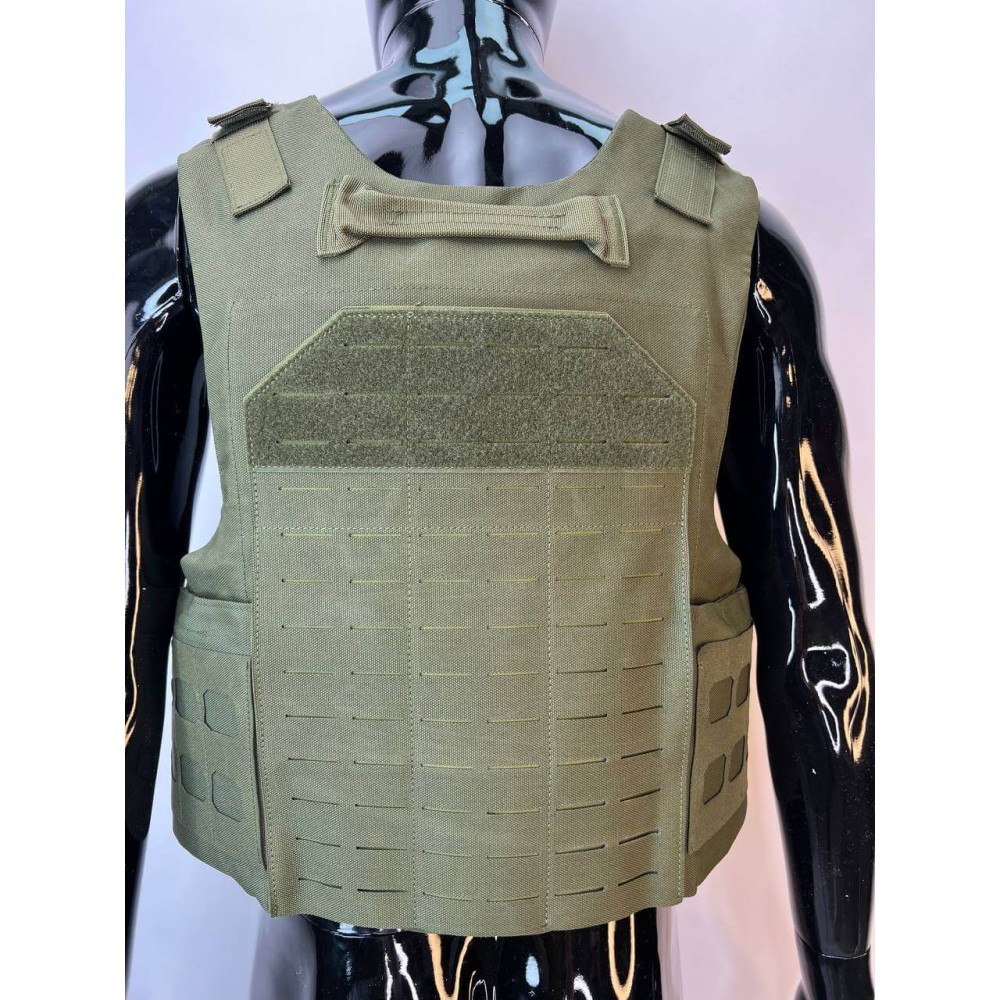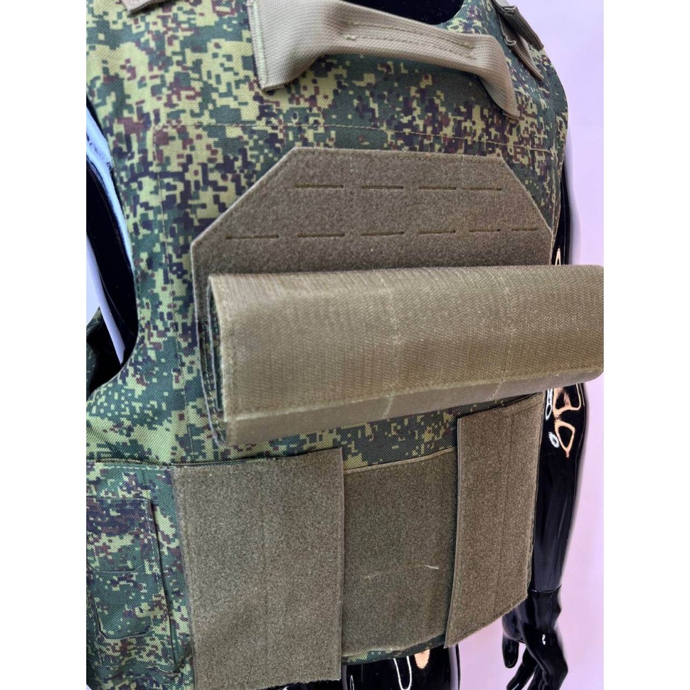 - Бронежилет из Оксфорда 1000d: Внешний чехол бронежилета выполнен из прочной ткани Оксфорд 1000d, обеспечивая износостойкость и водостойкость. Чехол также оснащен системой "MOLLE" для размещения дополнительного снаряжения.