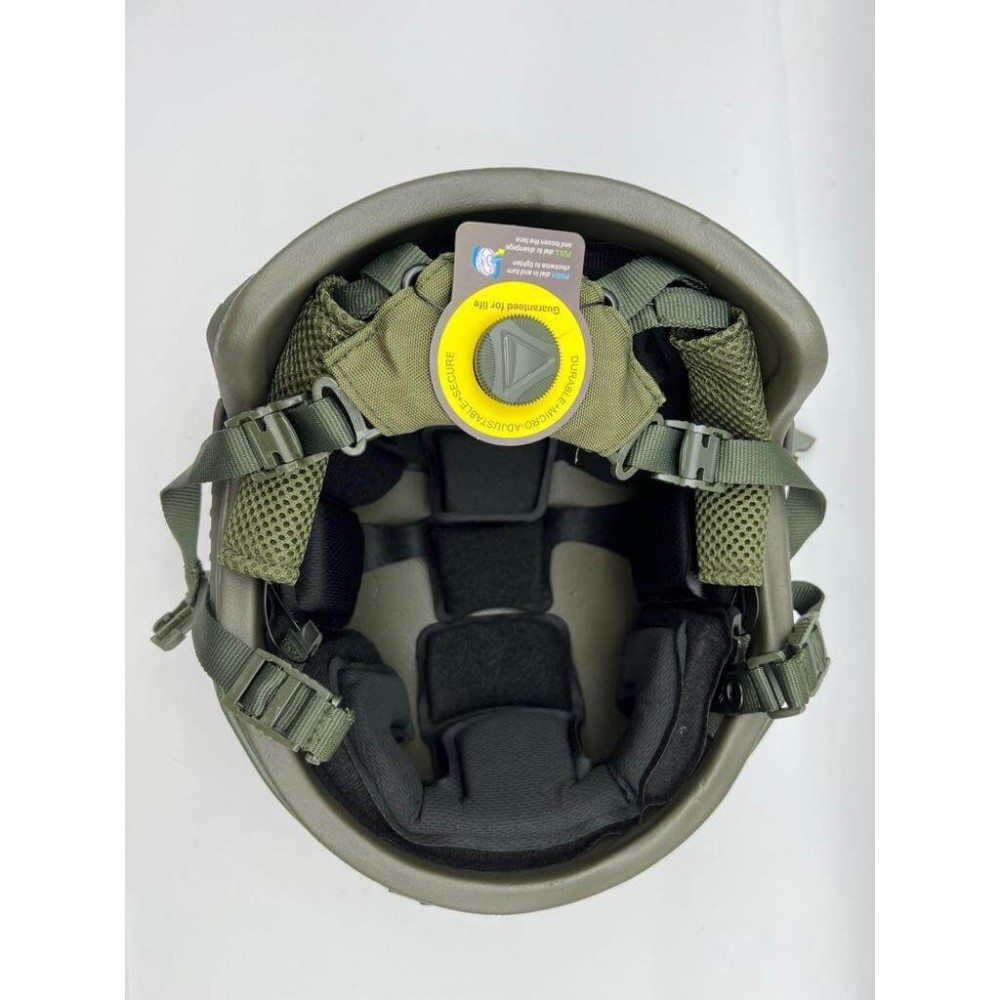 - Материал: Шлем изготовлен из композитной брони на основе арамидного (кевларового) волокна, обеспечивая легкий вес и высокую баллистическую защиту.